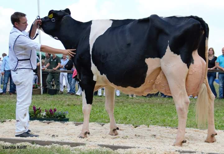 Willemshoeve Rita 670 has won again the Grand Championship (Barones) at the Dairyfair Mariënwaerdt in Beesd the Netherlands, last Saturday. This is the 2nd time Rita 670 has won the title Barones of Mariënwaerdt and is the 3rd time this title went to a Rita from Willemshoeve Holsteins! Also the Reserve Sr. Championship went to a Rita with the Sanchez daughter Willemshoeve Rita 579. Also great results for Molenkamp Holsteins with 2 classwinners R&W and for JK Eder Holsteins & Diamond Genetics with the Milkingheifer Championship for JK Eder DG Esmeralda.