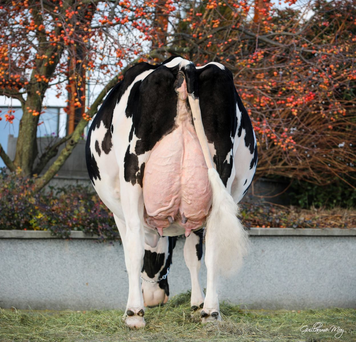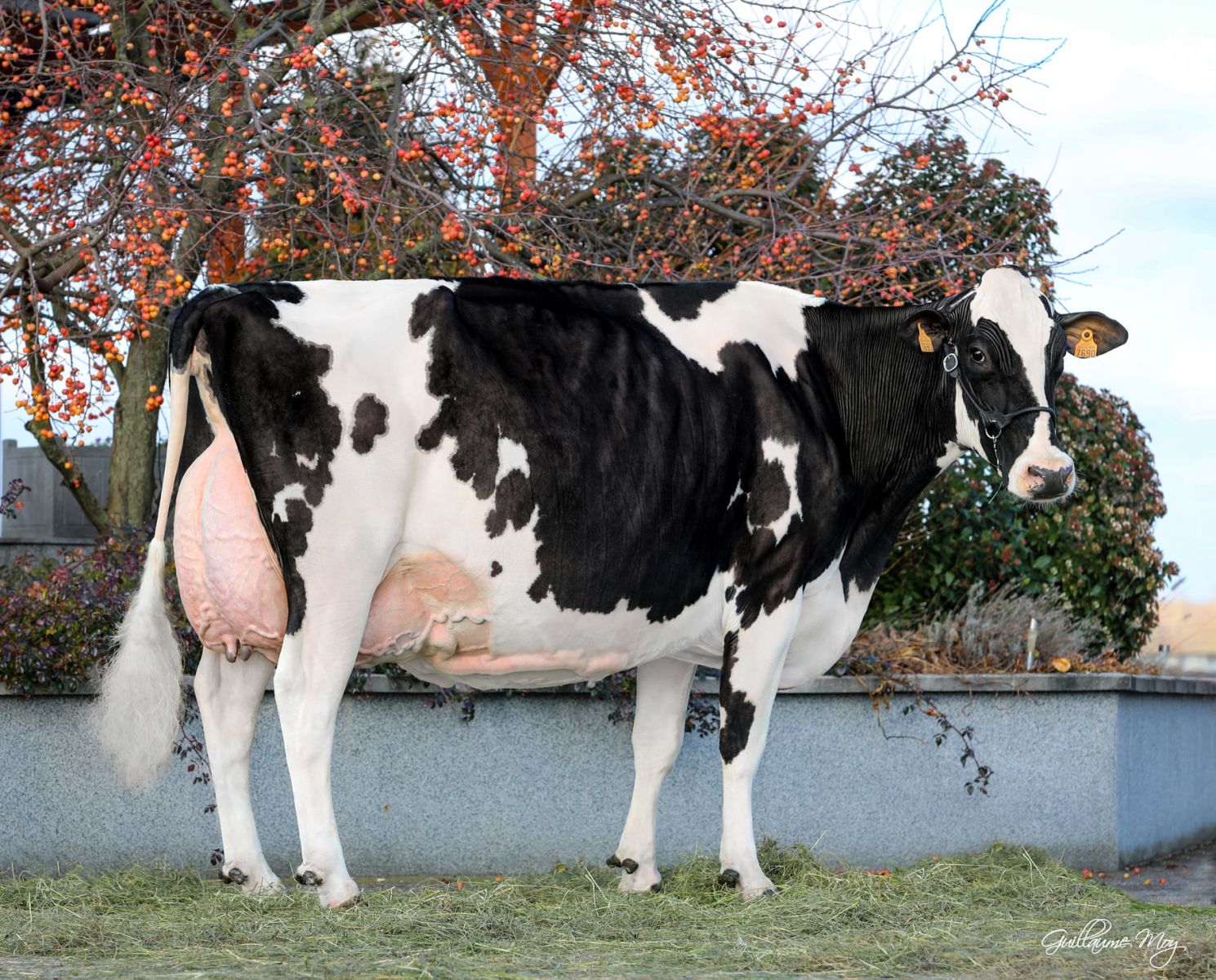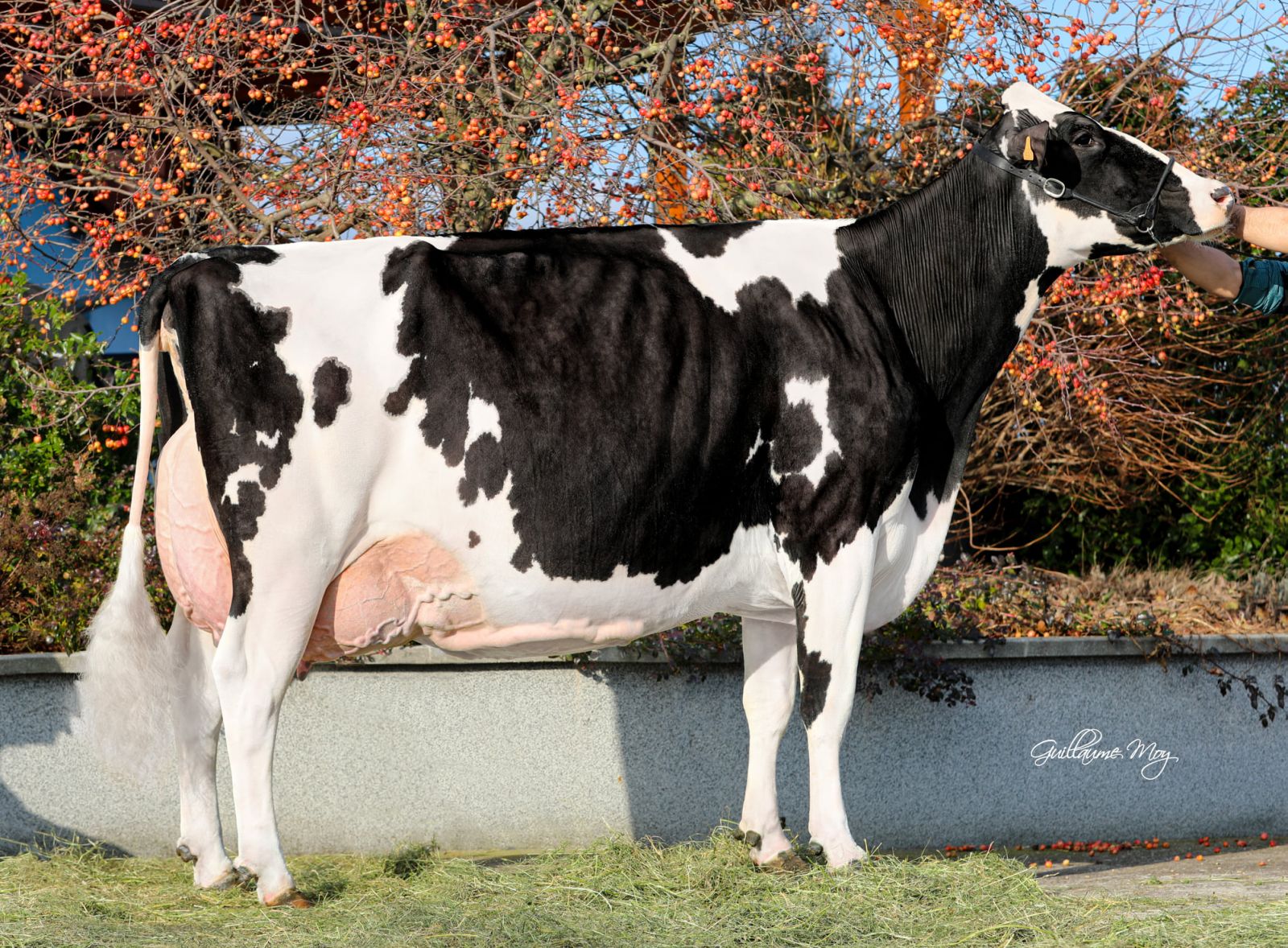 Wilt Emy EX-95-FR is in top shape and pictured at GAEC Wilt in Dachstein, France made by Guillaume Moy Photographies. The nine year old Wilt Emy EX-95-FR is a Mars Yorick daughter with EX-96 for her fantastic mammary system out of Wilt Elena EX-93-CH EX-93-MS 4E (s. Shottle) and goes back on the huge brood cow that produced: 73 All-American nominations, 3 EX-96, 8 EX-95 & >420 EX offspring: Krull Broker Elegance EX-96-USA 3E GMD DOM. The Mars Yorick daughter was Reserve Intermediate Champion Eurogentique 2017, 3rd place Swiss Expo Lausanne 2016 & 2017, Grand Champion Departemental Bas Rhin, 2014 and is the dam to Wilt Emilio @ Ascol.