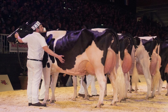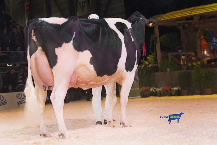 Riverdane Woelchen 8 recently scored the Maximum score of EX-93-UK with EX-94 for her fantastic Mammary System in her 3rd lactation! Woelchen won her class at the European Championships in Fribourg and is owned by I-Cow HolsteinsRiverdane Holsteins and Ponderosa Holsteins.