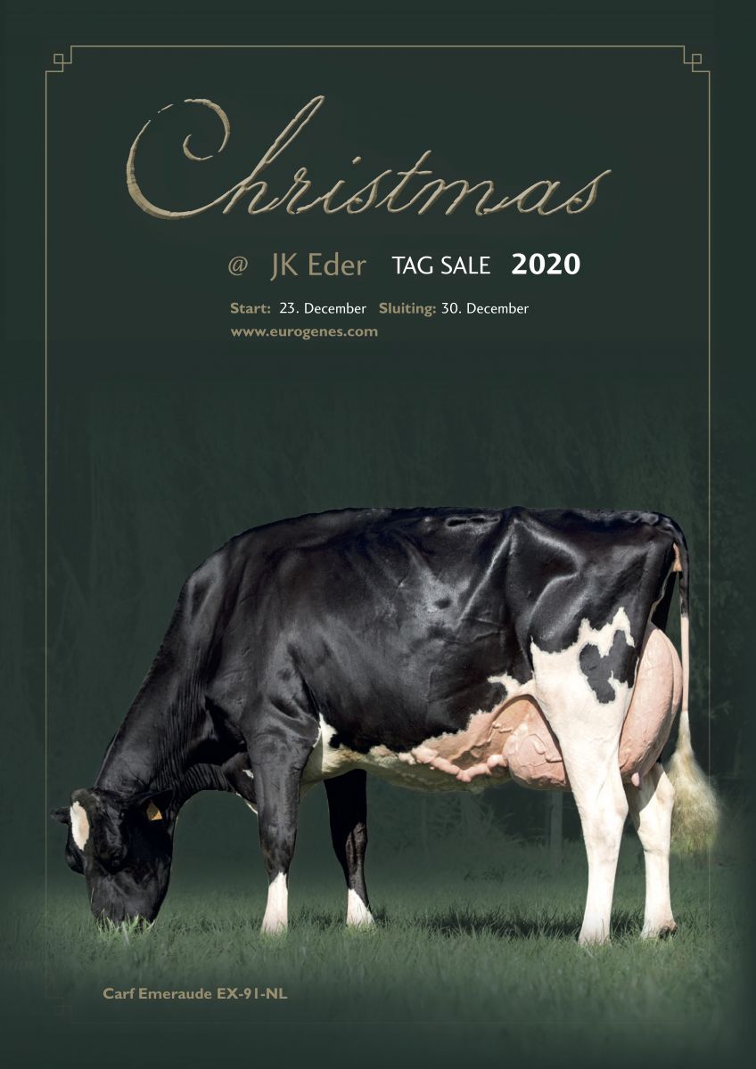 Write it down and make it happen, after a succesfully first edition of the Christmas @ JK Eder TAG Sale a brand new 'Christmas' edition will start December the 23th till December the 30th 2020. Multiple great heifers & embryo packages are selling from the very best which JK-Eder Holsteins has to offer you like: Carf Emeraude, JK DG Esmeralda, Darling's, Barbara's, Budjon Redmarker Desire, Lady Gaga and multiple interesting others. Stay tuned at Eurogenes.com for more info about this super sale coming up!!